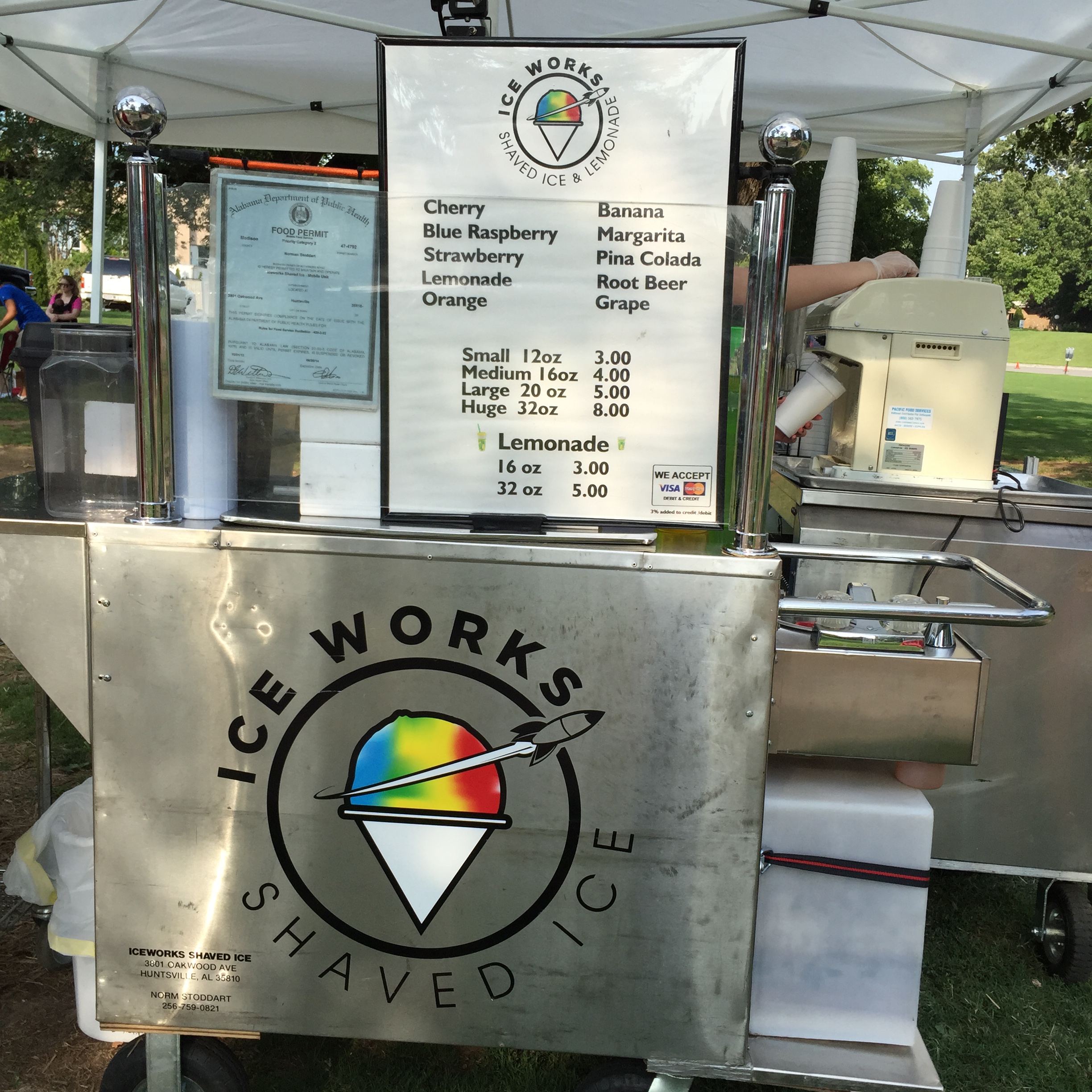 We really enjoy a good cup of shaved ice. We began our little business twelve years ago. Shaved ice was hard find in Huntsville. We started with a little cart moved to a 6 X 10 trailer then got our Van which can serve lots of yummy stuff. We currently operate two vans and a trailer. With a tiny restock van we can handle any size event .